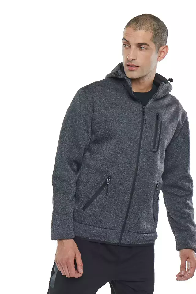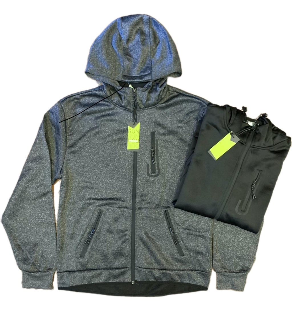DESCRIPCIÓN: Campera deportiva con capucha y cierres termosellados combinados en negro. Interior bondeado en polar.