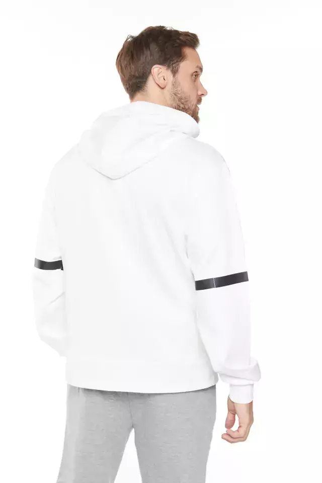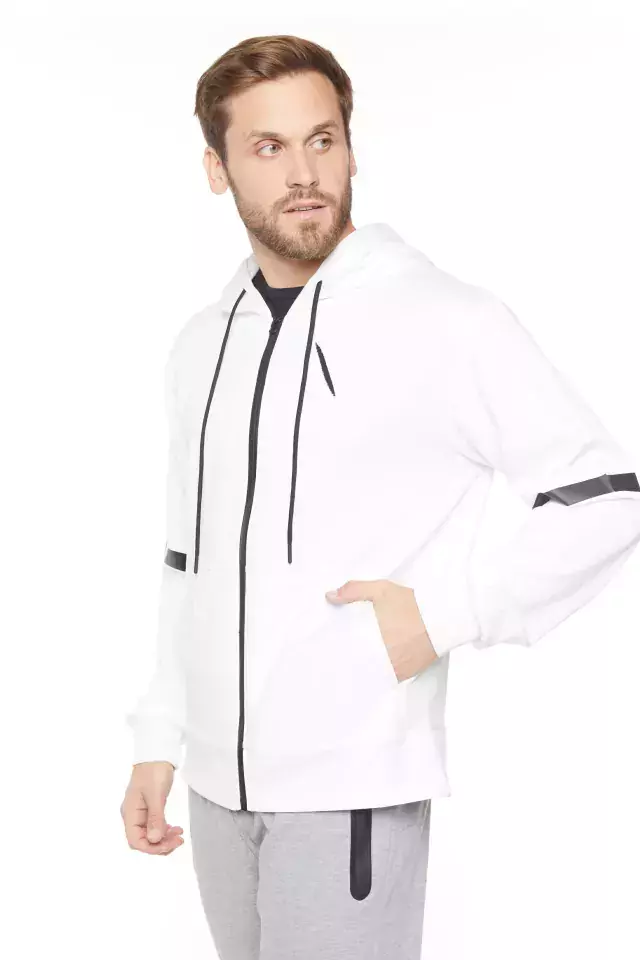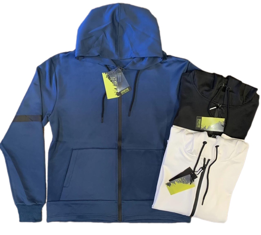 DESCRIPCIÓN: Campera deportiva de scuba con capucha. Estampado vinílico y cierres termosellados negros.