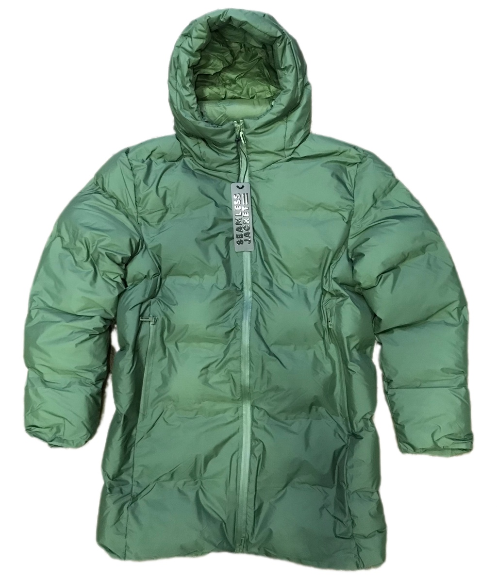 DESCRIPCIÓN: Campera Larga de Nylon de Media densidad con costutas termofusionadas, cierres termosellados, puños tejidos escondidos y capucha.